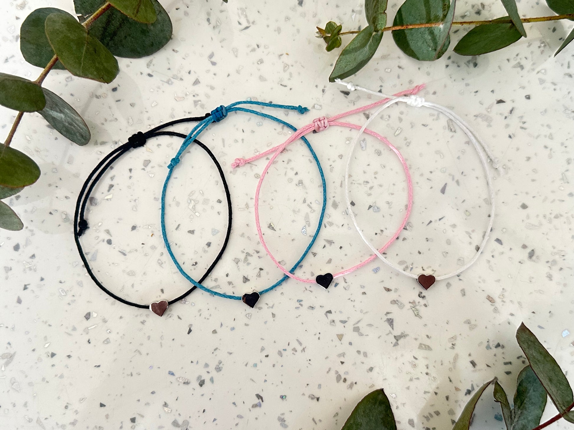 Choose from silver plated or sterling silver heart bead. The cotton string bracelet is completely adjustable!